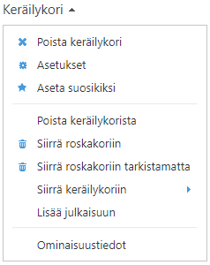 - Kaikki nämä toiminnot kohdistuvat valittuun keräilykoriin.
