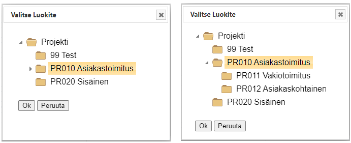 Luokitteen voit valita jo ennen, kun teet uuden objektin.