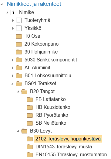 - Luokitetieto on yleensä hierarkkinen ja jokaisella objektityypillä (nimike, piirustus, projekti..) on erilainen luokitehierarkia.