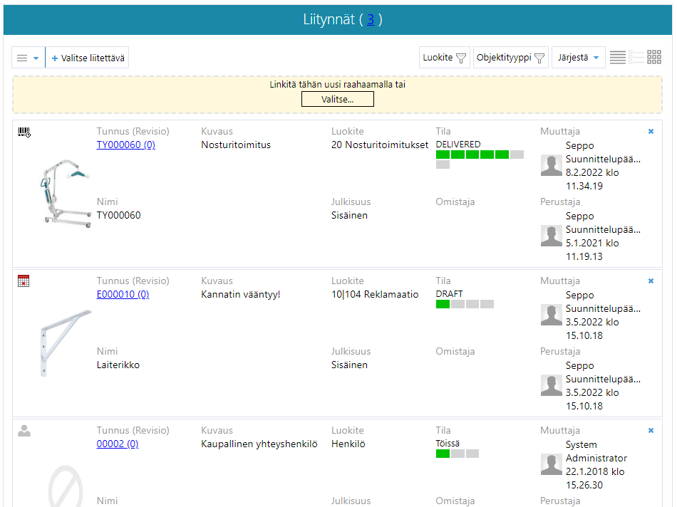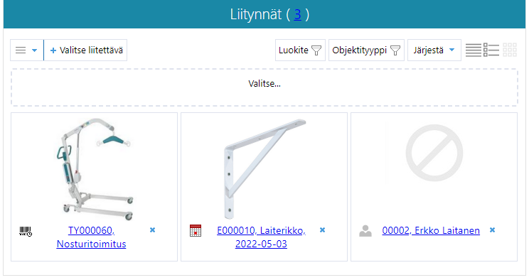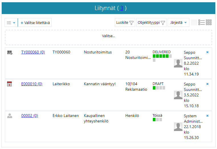 (2) Tarvittaessa voit siirtyä liittyvät objektin kortille napsauttamalla objektin tunnusta.