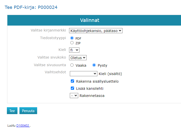 (10) Valitse tarvittaessa rakennetasot, joista PDF-kirja koostetaan.