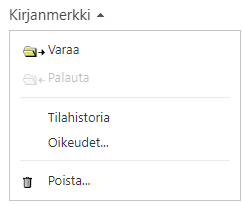 Kirjanmerkkiin ja mapitustyökaluun liittyvät toiminnot