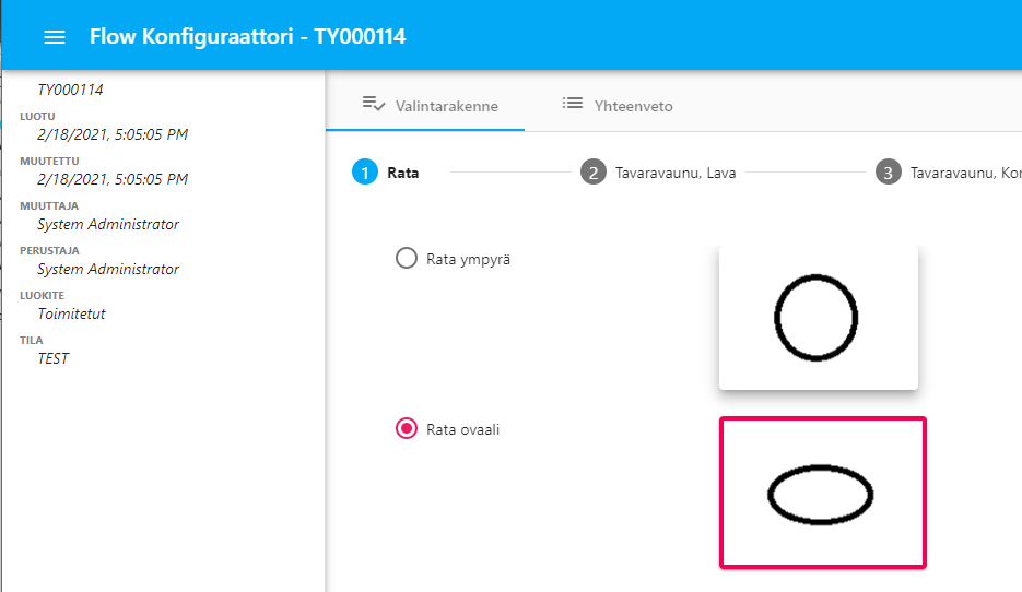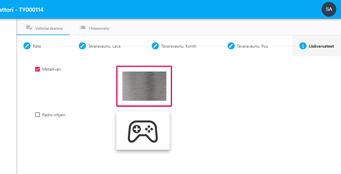 - Huomaa: Rakenteen ratkaisu on mahdollista vain, kun tuoteyksilö on tilattu