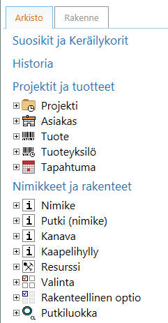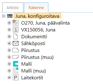 Selaimessa Tuoterakenne -välilehdellä rakenne näyttää tältä. Huomaa, että päänimike muuttui harmaaksi, se tarkoittaa sitä, että rakenne ei ole enää yksikäsitteinen vaan geneerinen.