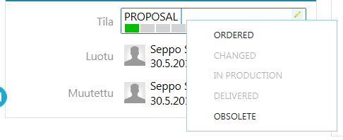 Mikäli tarjous ei johda tilaukseen, voidaan tuoteyksilö siirtää tilaan OBSOLETE.