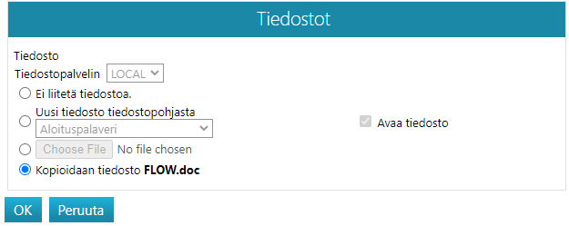 - Voit kopioida dokumentin joko liitetiedoston kanssa tai ilman liitetiedostoa tai voit valita kopiolle uuden liitetiedoston.