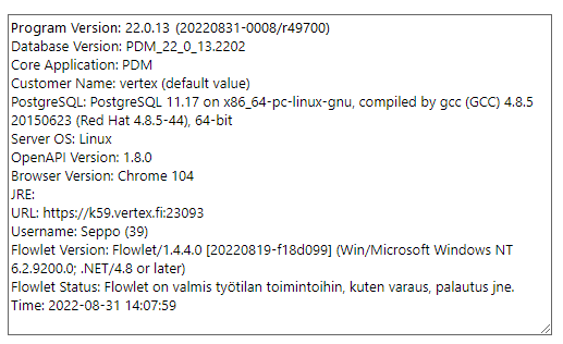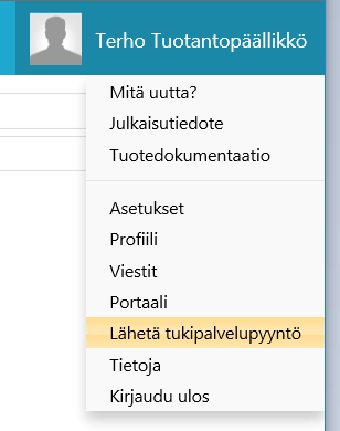 Epäiletkö virhettä järjestelmässä? Keskustele ensin järjestelmän pääkäyttäjän kanssa. Jos olette sitä mieltä, että vika on olemassa ja raportointi siitä on aiheellinen, ilmoita virheestä tukipalveluumme. Älä lähetä sähköpostia! Käytä Flow'n toimintoa "Lähetä tukipalvelypyyntö", joka käynnistyy selainikkunan oikeasta yläkulmasta käyttäjän nimen takaa avautuvasta valikosta.