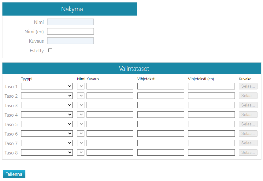 - Kuvaus näkyy vain tässä määrittelysivulla, se ei näy varsinaisessa käyttöliittymässä.