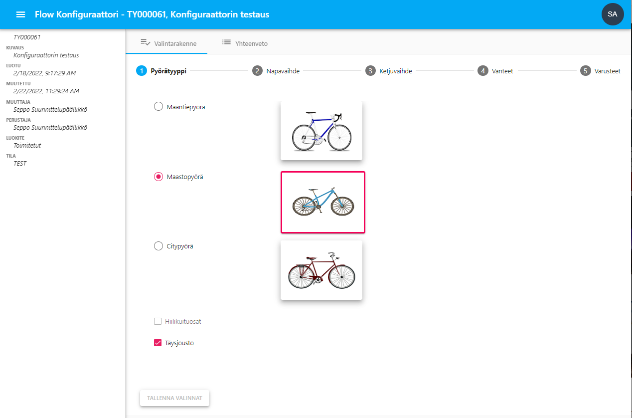 Tee tuoteyksilön valinnat eli konfiguroi tuote