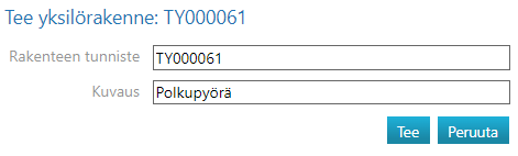 (3) Valitse toiminto Tuoteyksilö > Tee yksilörakenne.
