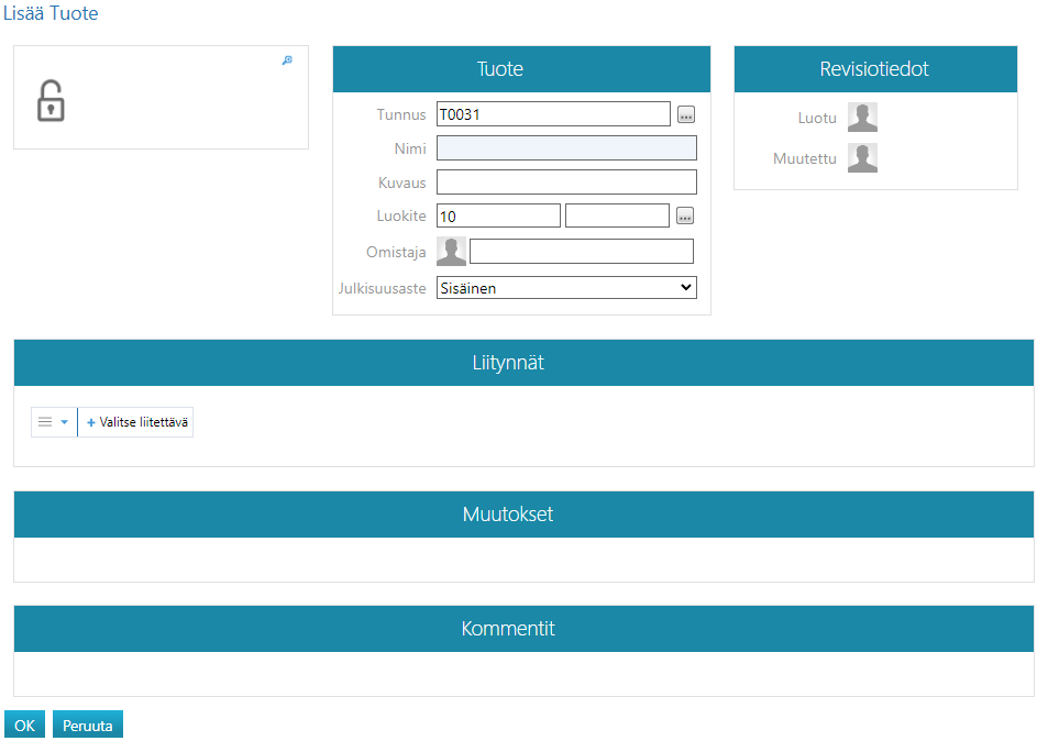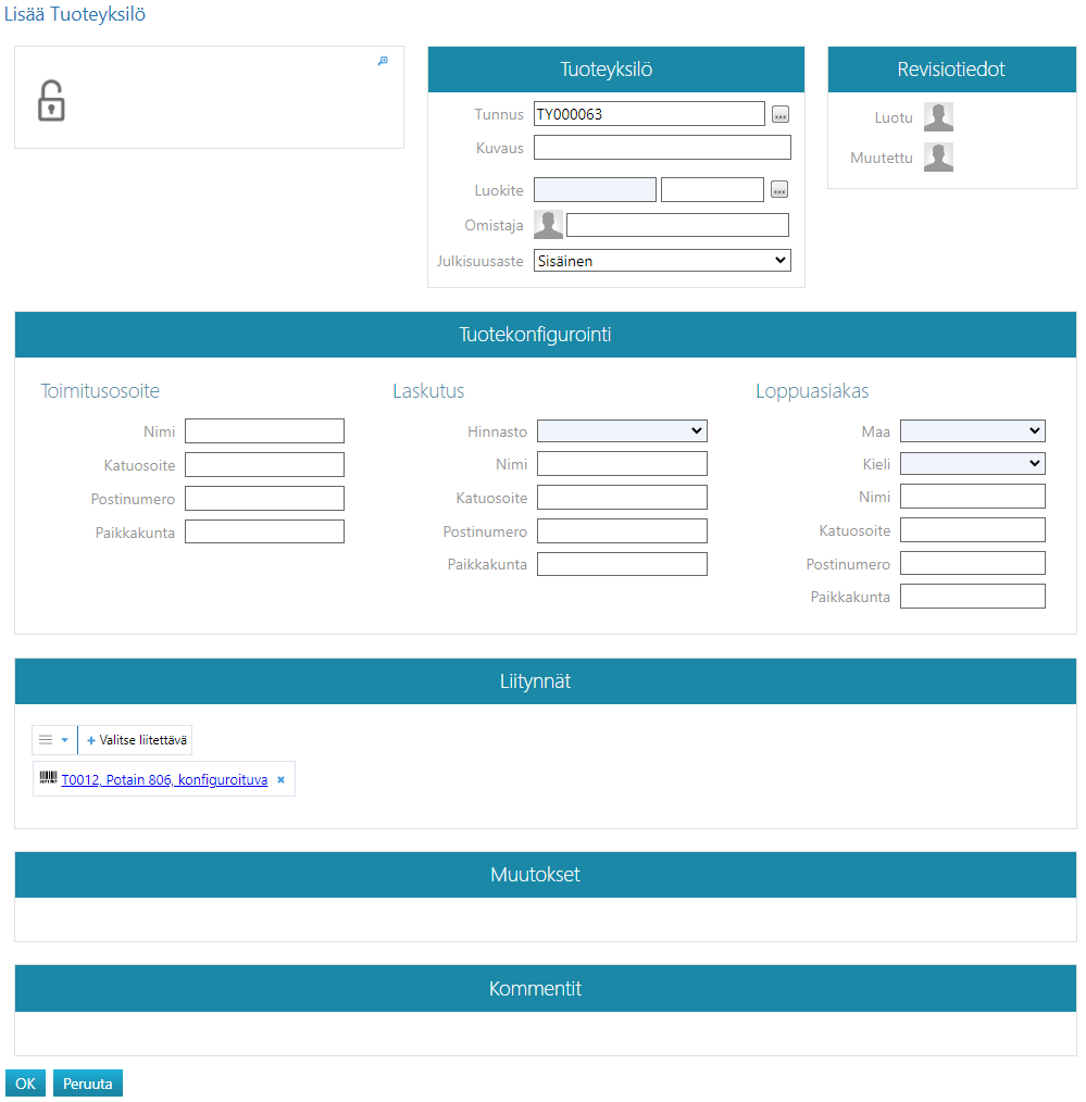 Tuoteyksilön luonti kuuluu myyntiorganisaation tehtäviin.