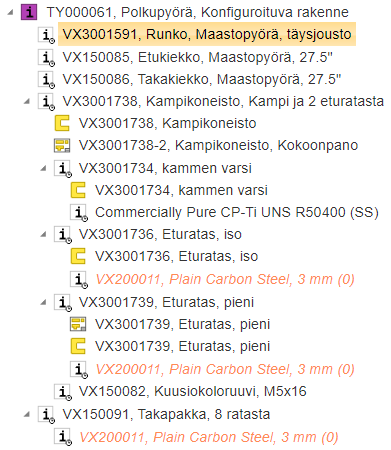Tämän jälkeen yksilörakenteen nimikkeet etenevät yrityksen ERP-järjestelmään.