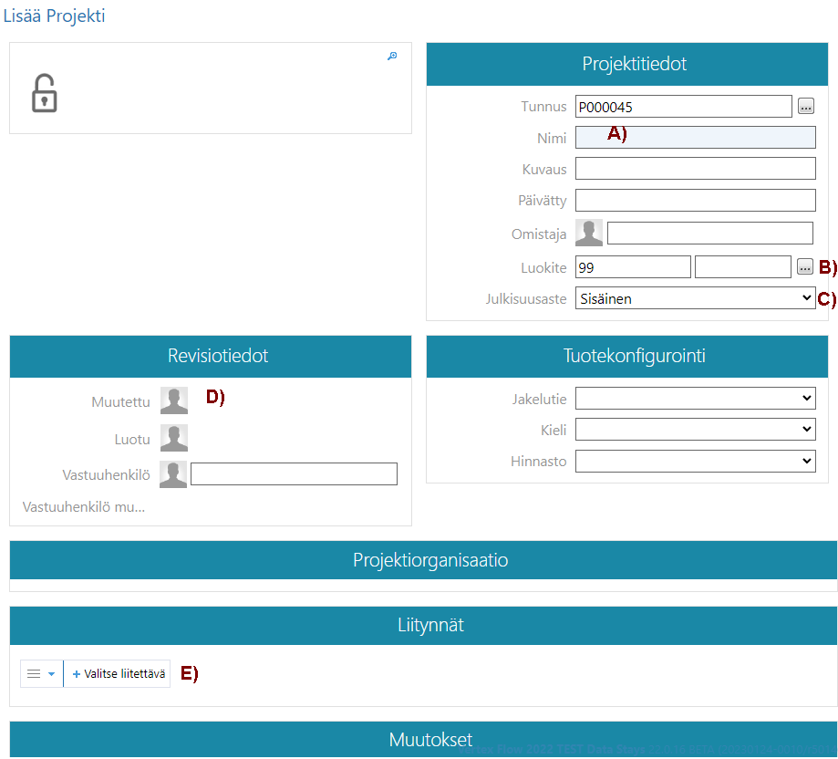 Vastuuhenkilö: Objektille voidaan määrittää vastuuhenkilö. Asetuksista riippuu, missä tapauksissa vastuuhenkilölle lähtee viesti objektin muutoksista.