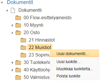 Esimerkissä on Dokumentille tyypillinen objektikortti.