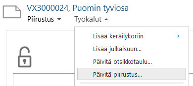Voit päivittää piirustuksen suoraan Flow-selaimessa piirustuksen kortilta toiminnolla Työkalut > Päivitä piirustus.
