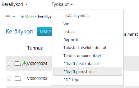 Piirustusten päivitys keräilykorin kautta