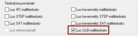 - Kääntäjäoptio vaaditaan IFC, SAT, STEP ja PDF3D:n luontia varten.