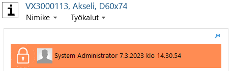 Kuva-kenttä on oranssi ja siinä lukittu lukko sekä varaajan nimi.