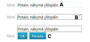 - Kenttä avautuu muokattavaksi ja sen alle ilmestyy toiminnot OK ja Peruuta.