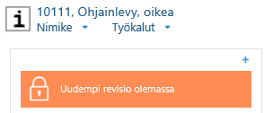 Kuva-kenttä on oranssi ja siinä lukittu lukko sekä huomautus uudemmasta revisiosta.
