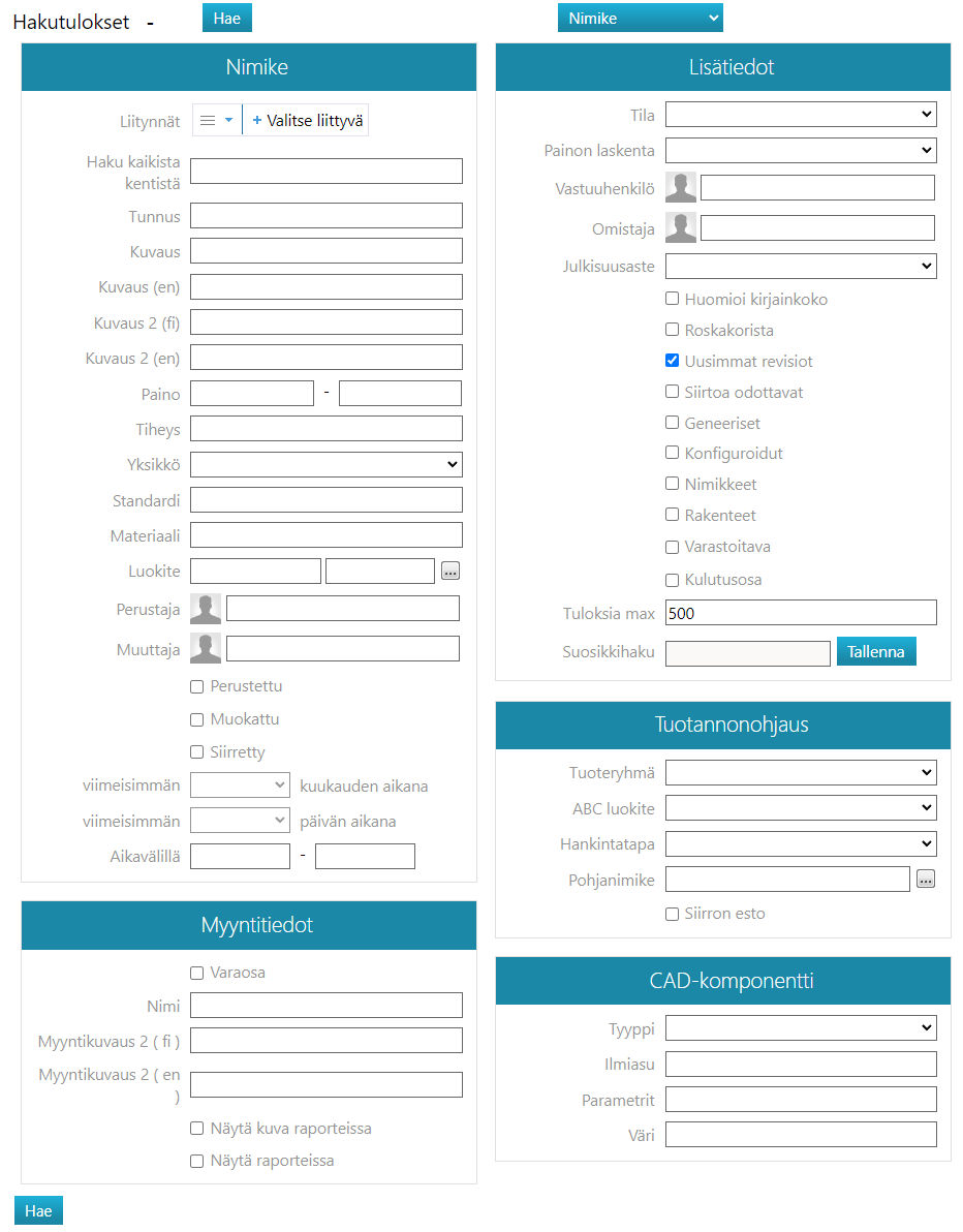- Flow listaa hakuehdot täyttävät nimikkeet.