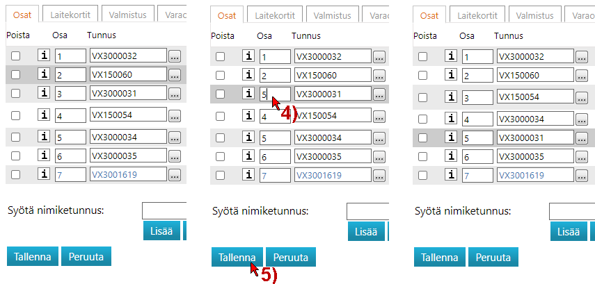(5) Kirjoita Osa-sarakkeeseen osalle haluamasi uusi osanumero.