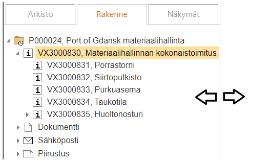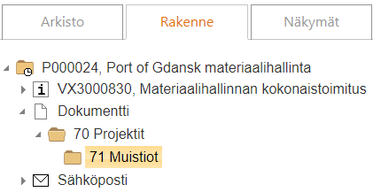(4) Valitse projektin alta Dokumentti-luokitehaara