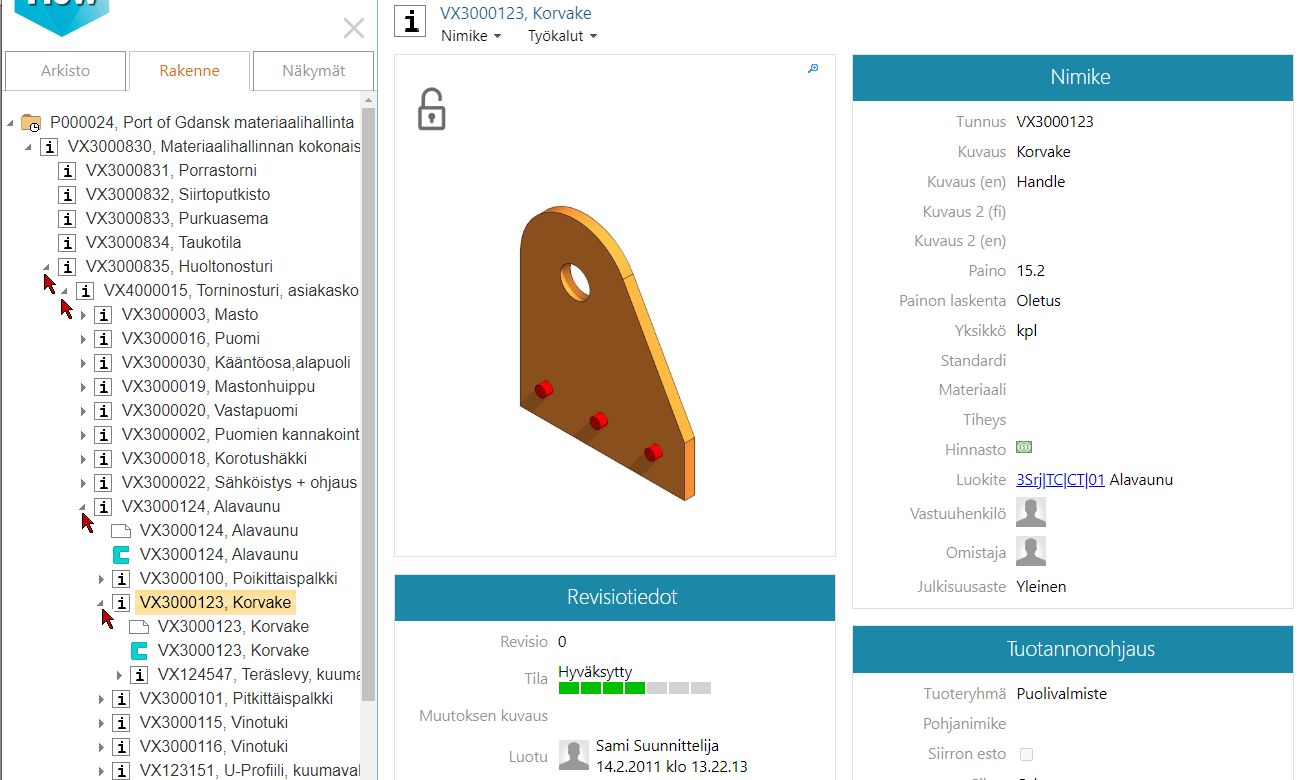 Avaa nimikkeen rakennetta napsauttamalla rakenteesta paljastuvia nimikkeitä