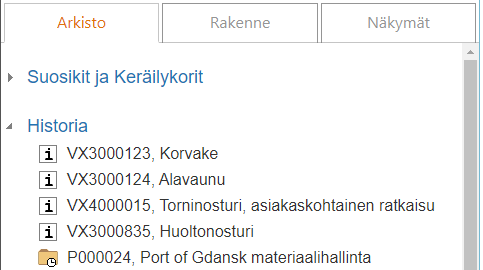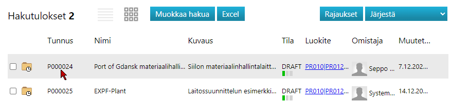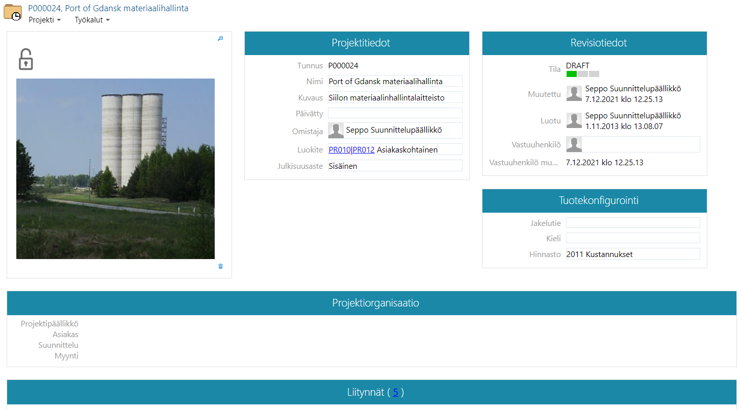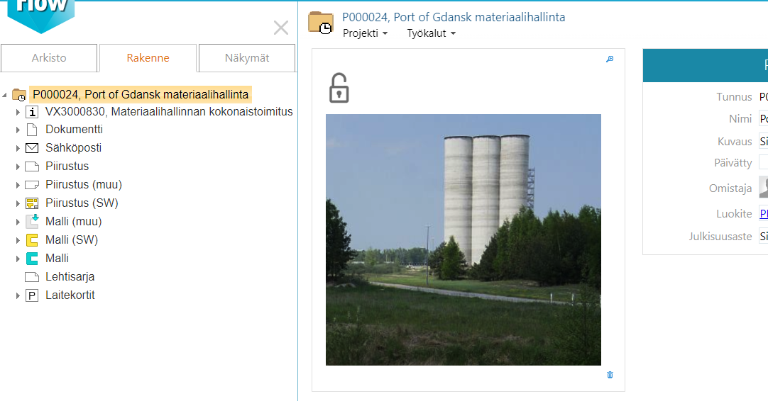 Näet siellä mm. avaamasi projektin P000024, Port of Gdansk materiaalihallinta