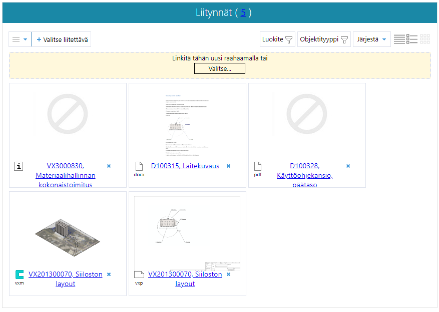 Liitä projektiin dokumentteja