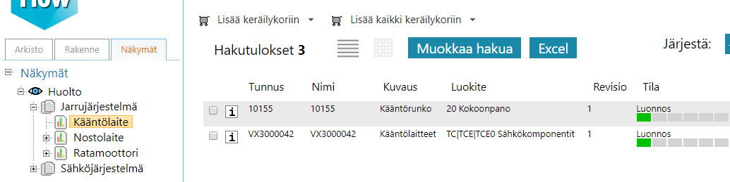 - Objektit löytyvät edelleen Arkisto-välilehdeltä objektityyppien ja luokitteiden perusteella.