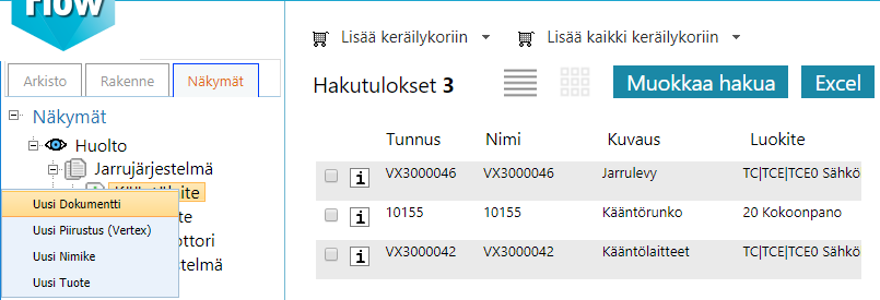- Näkymät perustuvat objektissa oleviin ominaisuustietoihin (metatiedot) ja/tai objektien liityntöihin.