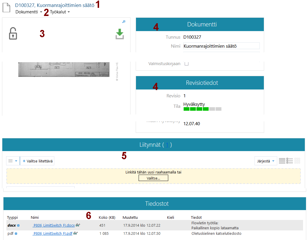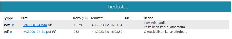 Tiedostot-lohko esittelee tiedostot, joita objektiin liittyy.