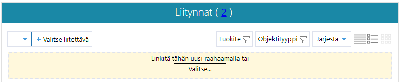 Lohkon otsikossa sulkeissa oleva lukumäärä kertoo objektin liityntöjen lukumäärän.