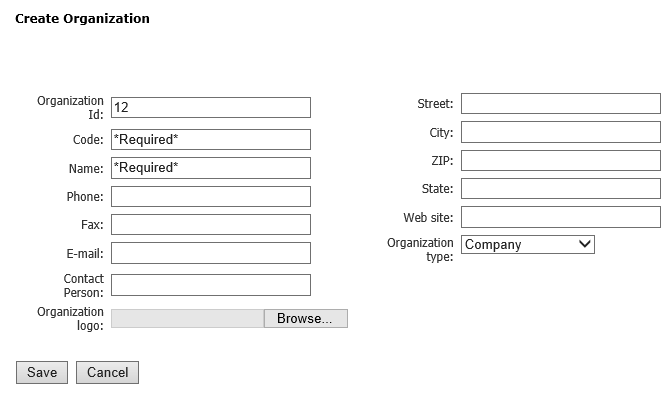 - Code: Organisaation vapaasti valittava numero tai tunnus. (Pakollinen tieto)