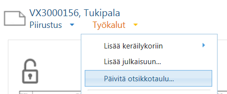 Toimintoa tarvitaan, jos olet tehnyt selaimen kanssa muutoksia piirustuskortille tai vaihtanut esim. vastuuhenkilöä.