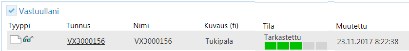 Henkilö, joka valitaan tarkistajaksi, saa Flow'n kotisivulle tiedon tarkastettavista piirustuksista. Hän näkee kotisivullaan Vastuullani -lohkossa olevan hänen vastuullaan olevia objekteja, joihin pitää ottaa kantaa.