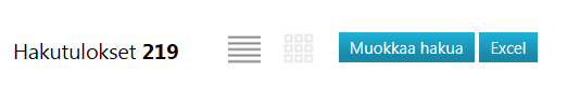 - Muokkaa hakua ei ota huomioon rajaustoiminnolla annettuja lisäehtoja, mutta käyttää pohjana edellisen hakutoiminnon tuloksia.