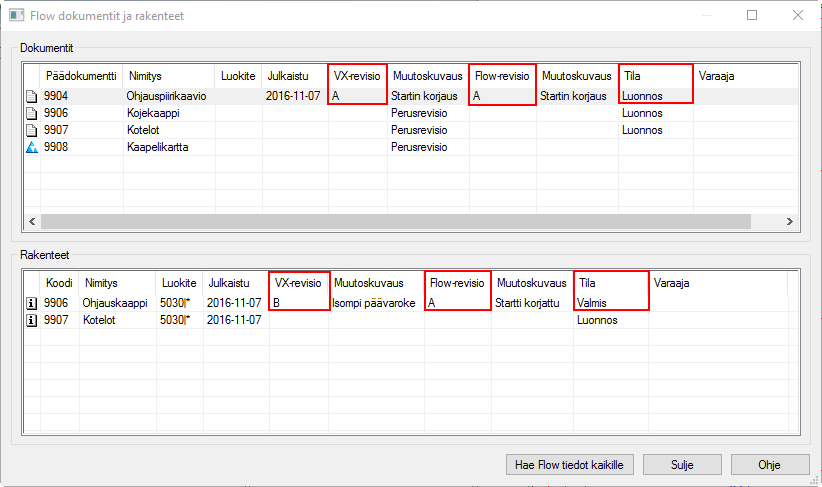 Rakenteet toimivat revisoinnin osalta kuten piirustukset.