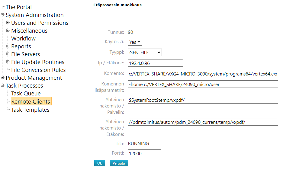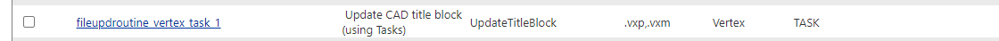 Kyseisen rutiinin tyyppi UpdateTitleBlock ja Program path TASK viittaavat Task Process Clientiin, jonka tyyppi on GEN-FILE