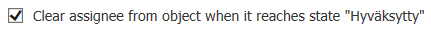 Vastuuhenkilöntiedon poisto hyväksytyltä piirustukselta asetetaan Työkierron asetuksissa: Valitse Portal > System Administration > Workflow > tilamallin nimi (tässä Standard) > Tilan ominaisuudet (Set State properties).
