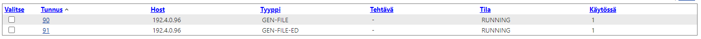 Prosessin tila RUNNING: toiminto on valmiina, BUSY: toiminto on käynnissä