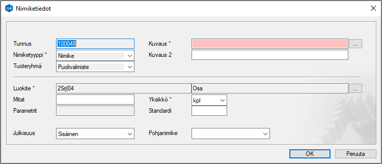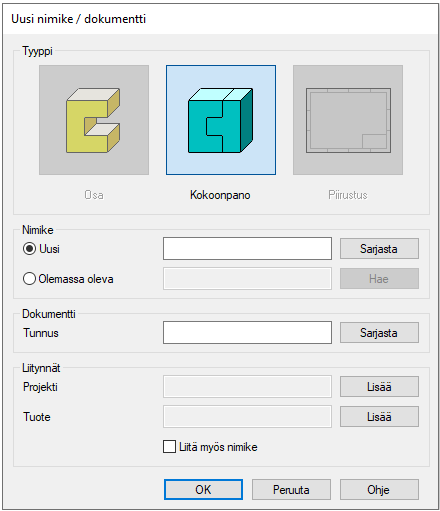 - Vertex G4 avaa keskusteluikkunan Uusi nimike / dokumentti.