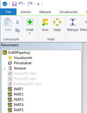 - Kokoonpanopuussa aliosat näkyvät PART-alkuisina.