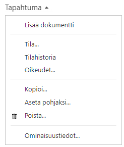 Tapahtuma kuvaa jotain tilaisuutta tai muuta aktiviteettia, joka voi liittyä esimerkiksi asiakkaaseen, projektiin tai tuotteeseen.