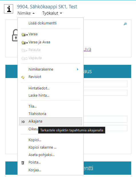 Pystyt tarkastelemaan tapahtumia, jotka objektille on tehty. Tapahtumia ovat esimerkiksi muutosten palautus, objektin ominaisuustietojen päivitys ja keskustelukommentin lisäys.