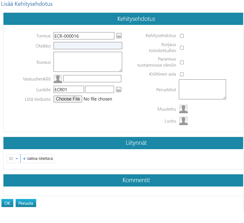 Jos kehitysehdotus päätetään toteuttaa, tehdään siitä MuutosECO (Engineering Change Order). Katso Tee muutos ECO.