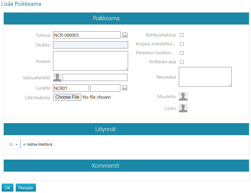 Tee poikkeamailmoitus NCR