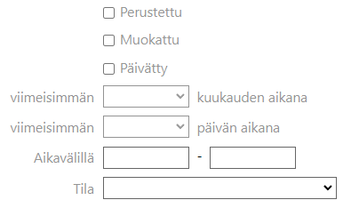 - Hyviä hakutekijöitä ovat mm. objektin perustamiseen tai muokkaamiseen liittyvät aikamääreet.
