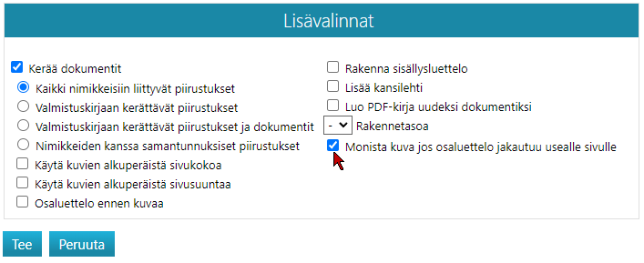 - Huomaa valinta Monista kuva, jos osaluettelo jakautuu usealle sivulle.